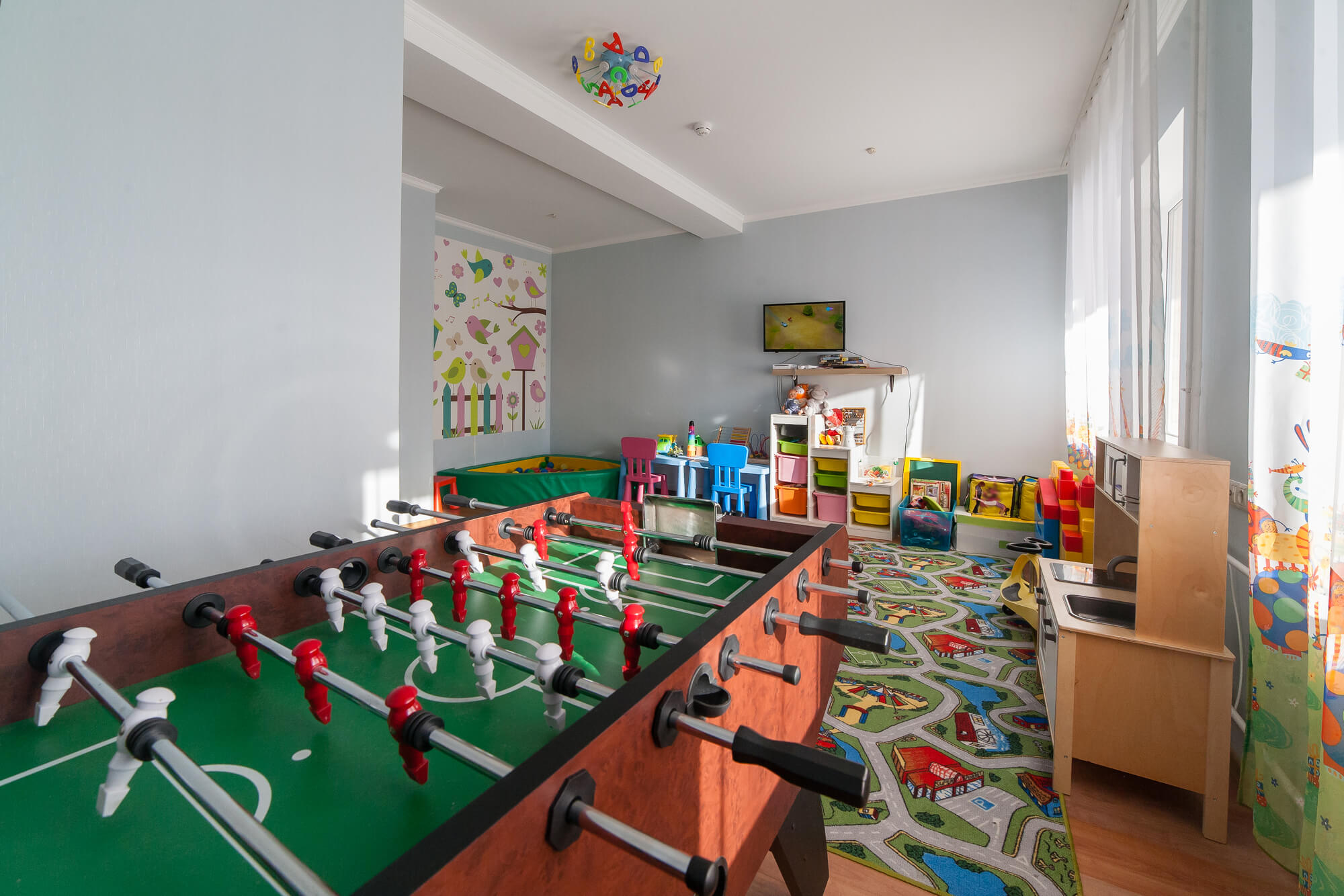 Детская игровая комната светлая и уютная, специально оборудована для интересного и безопасного времяпрепровождения детей. На стенах размещены яркие и дружелюбные рисунки, создающие атмосферу комфорта и веселья. В комнате предусмотрено множество разнообразных игрушек, а также зона для настольного футбола, способствующая активной игре. Находится на 2-м этаже главного корпуса отеля, посещение только в сопровождении взрослых.